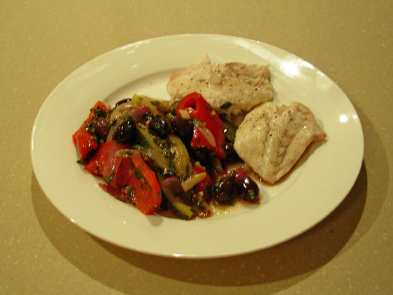 We try to eat fish at least once a week and one dish that is simple to make but absolutely delicious is fish with charred Mediterranean vegetables. This is ideal if you want something yummy with only about half an hour to prepare and cook.