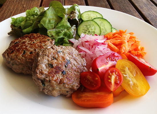 Herbed rissoles traditionally have bread soaked in milk added to the mix to fill them out and help keep them moist when cooked. They are also usually lightly dusted in plain flour before frying to help develop a golden brown crust on the outside. Now that we’re trying to eat less gluten this is a no–no so I’ve played around with the herbed rissole recipe and managed to reinvent a really tasty mix. I actually think it’s better than the original.