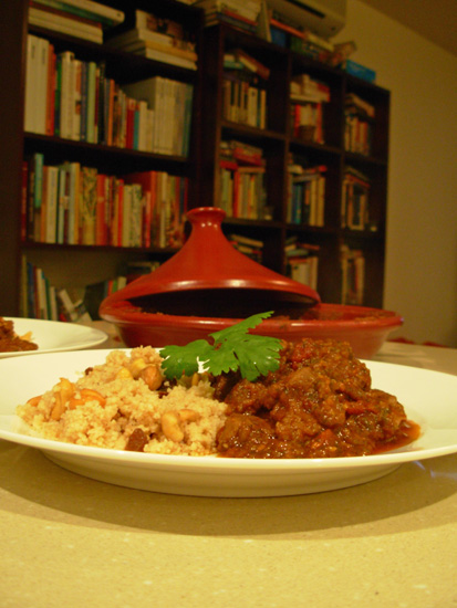 When the tagine is cooked (the lamb should be so tender it breaks apart), serve with the cous cous.