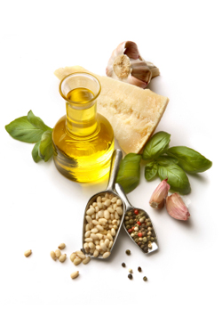 Put the basil leaves, garlic, toasted pine nuts and half the oil in the food processor and blend until smooth. Scrape into a bowl, stir in the cheese and remaining oil, and mix well. Serve immediately, or store in a screw-top jar. Seal in the freshness and stop the leaves from blackening, cover the pesto with a thin film of olive oil before closing the jar. The recipe makes about 1½ cups of pesto.