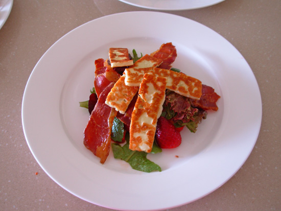 The combination of basil, haloumi and macerated strawberries with balsamic vinegar in one mouthful was divine. In Jamie’s own words, “a brilliant thing to eat”.